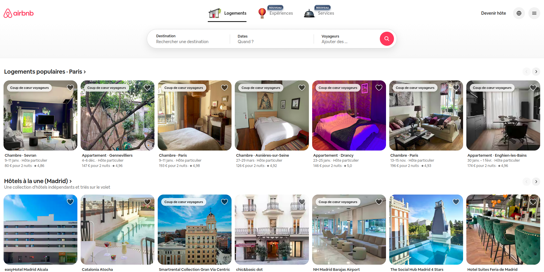 Exemple : Le site de Airbnb affiche immédiatement des logements en location avec une recherche par destination, ce qui clarifie leur activité.